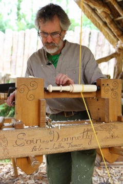 Eoin Donnelly, a carpenter and project coordinator in the Irish National Heritage Park, often demonstrates traditional woodworking in the park. He is also the founder of a group named Muintir na Coille committed to the education and development of sustainable use of local woodland. In this video, Eoin shows how a traditional pole-lathe works, and talks of the ideal based on which the group works.