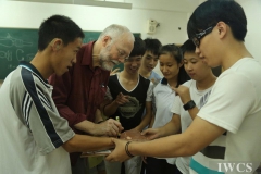 Finger spinning tops are not merely toys but can be a token of love. A total of 150 tops traveled far and landed on the hands of the students of Wenzhou School for Special Education. It was a kind gesture by Australian woodturner Erine Newman, who was invited over to lead a two-week woodturning training course for the collaborative project of IWCS-AAW beginning September 15, 2014.