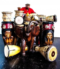 In 1982 Eduardo Córdova Reyes graduated from the National School of Art Instructors of Cuba; and in 1989 he graduated as Professor of Percussion of the National Center of Improvement for the Artistic Teaching of Cuba. From the year 1990, he works as a percussion teacher at the Vocational Art School. One day he decided to make his own instruments because the sound of his drum did not leave him completely satisfied. Thus begins an adventure in which cedar trunks, ironwork and leather begin to shape a world of sonorities and dreams in which music and crafts converge and complement each other without setting precise limits. He held exhibitions of instrument, conference, demostrations and created his musical group Obbara, participates in international event, especially World Wood Day culture event in China and Turkey organized by International Wood Culture Society which offered him an occasion to meet, play and communicate with musicians from around the world on the same stage. Córdova is also known as The King of Drums. He has devoted all his effort to acoustic music and the construction of drums. He considers his percussion teaching as a very important part in his life, which makes him fulfilled.