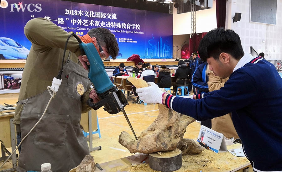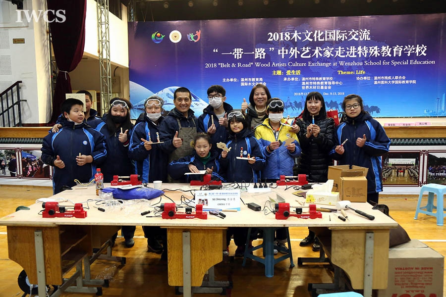Chinese and foreign wood artists at Wenzhou School for Special Education" is an extraordinary cultural exchange activity and a caring action. 20 outstanding wood artists from 14 countries gathered together, spending a memorable time with teachers and students from the special school. With the theme of "love for life", the event was jointly sponsored by the International Wood Culture Society and the Wenzhou Municipal Education Bureau. In the three-day intense and orderly wood carving activity, the artists and their student assistants completed the works in a pleasant atmosphere. All the finished works were collected in Wenzhou School for Special Education, witnessing the power of love. At the same time, DIY projects including the mini-woodturning, puppet show and puppet painting were also welcomed warmly. Students were happily took the opportunity experiencing the art and charm of wood. Chinese and foreign artists not only shared their passion, their special care and inspiration to children, but also sow a seed for their future. The event become an unforgettable memory for all the people involved.